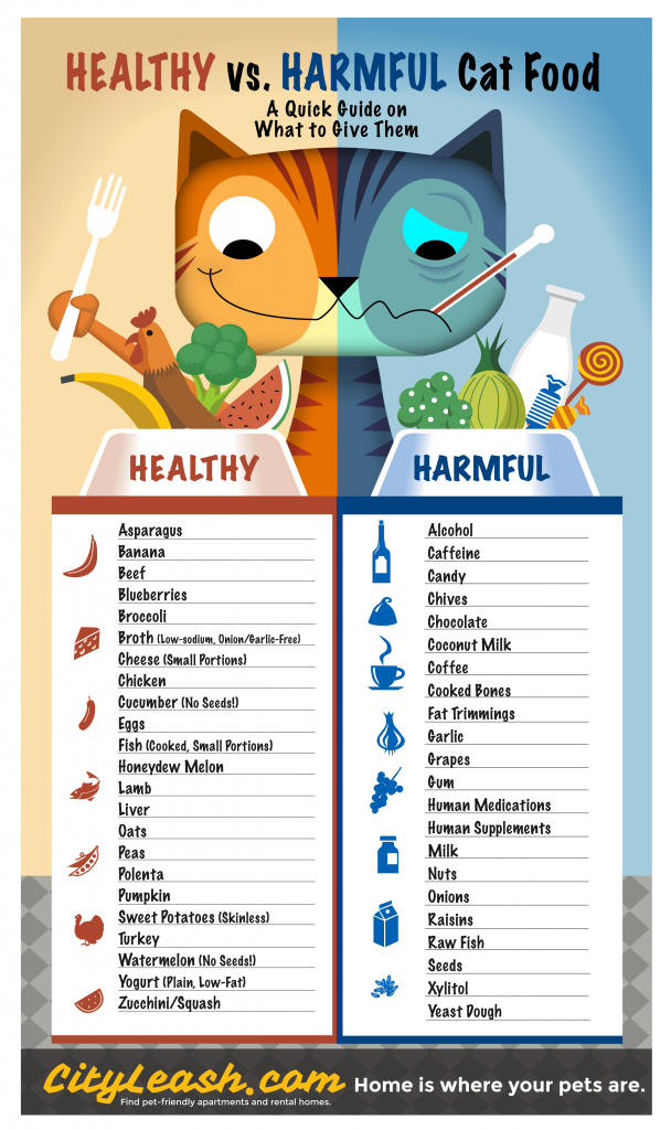 - Please do not feed food prepared for human. Many seasoning are toxic and/or poison to felines. Check with ASPCA for feline poison information